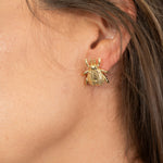 These bug studs pair nicely with our bright gemstone necklaces and gold paperclip chains.