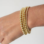 A set of 4 elastic bracelets, each with a slightly different bead size ranging from 3mm–7mm. The ultimate stack for everyday adventures and easy elegance. Comes in one size, fits 6-8+" with the stretchy cord.